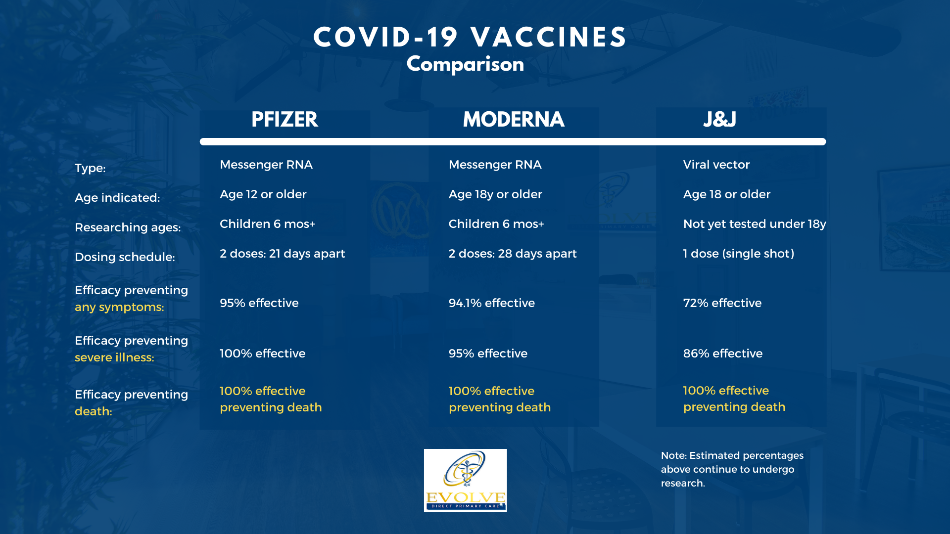At Evolve, we agree with the CDC’s recommendation. We’ve attempted to best summarize the data in the table below. Original data found at this link: New England Journal).